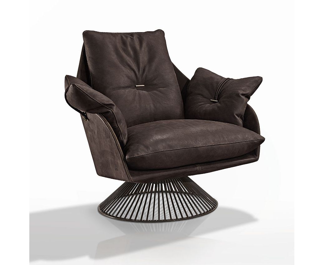 Современное дизайнерское кожаное кресло с изящными деталями.