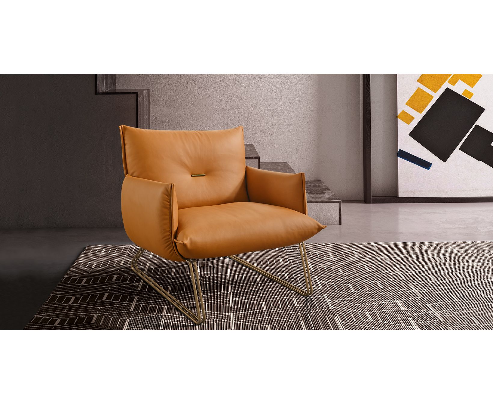 Дизайн позволяет ему с легкостью дополнять любой предмет из коллекции мебели Gamma. Margot — это кожаное кресло, красота которого подчеркивается элегантным трубчатым основанием, естественным образом «обнимающим» спинку и украшенным примечательной деталью в виде галуна с современным дизайном.
