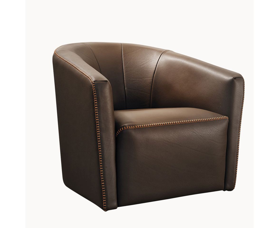 Кожаное кресло с ровными линиями, украшенное таким портняжным элементом, как шов Punto Cavallo.