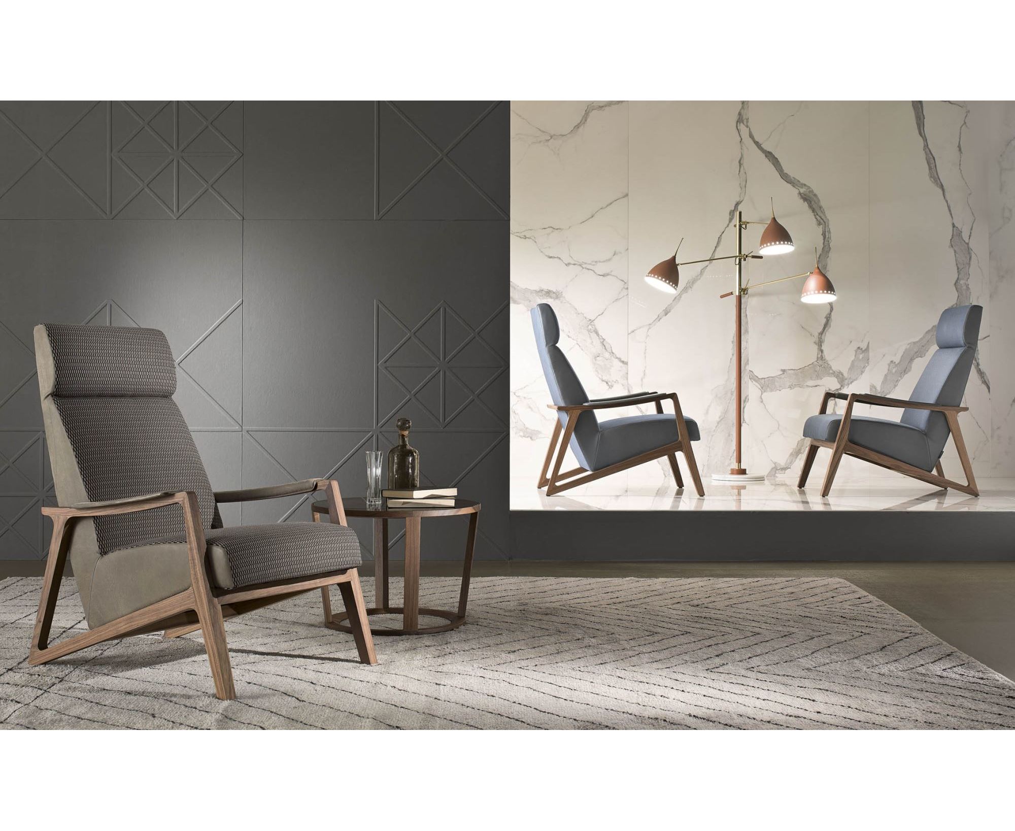 Barley воплощает в себе форму классического кресла бержер в стиле ретро 60-х годов с высокими спинками и мощными каркасами из ценных пород дерева.