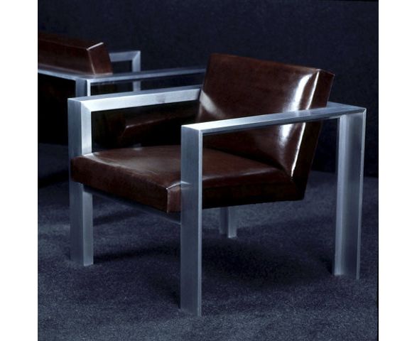 Прекрасный вид матового алюминия и шоколадной кожи, это поразительно линейное современное изделие.