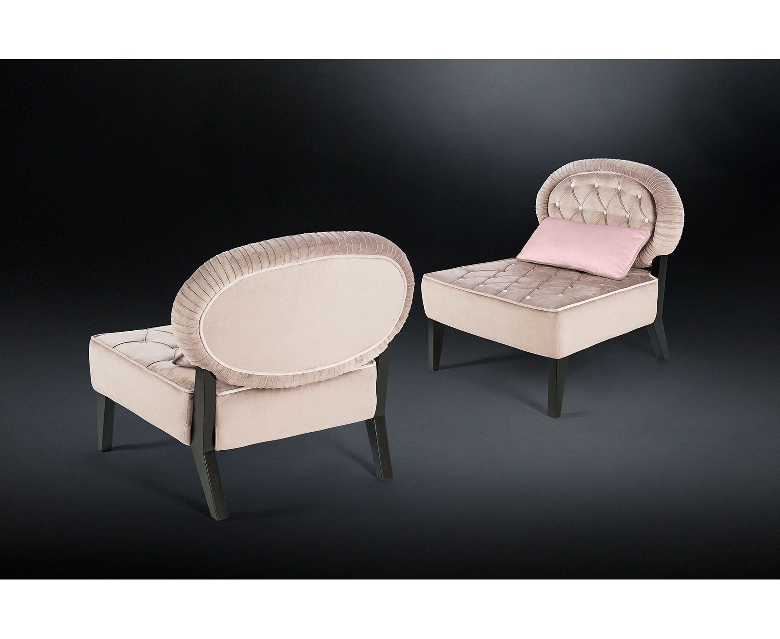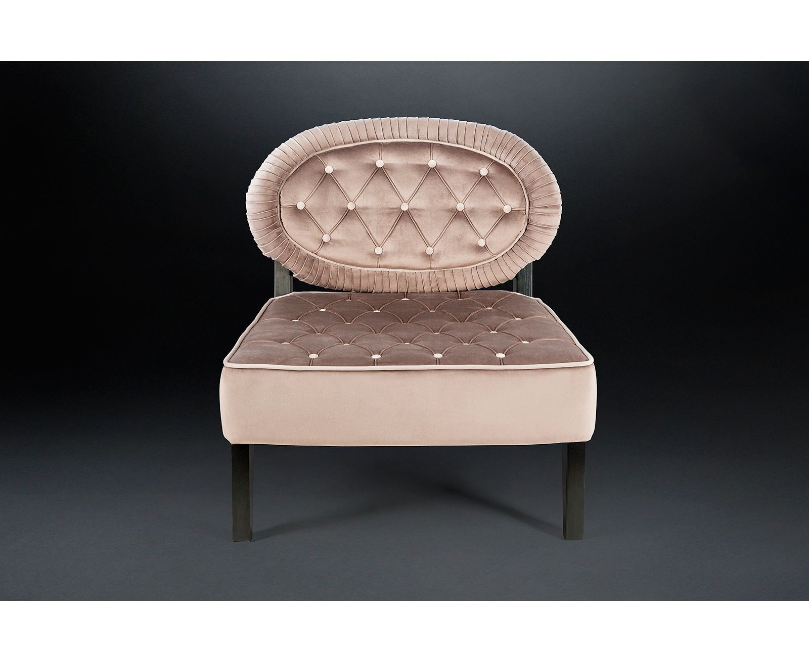 Элегантное и эксклюзивное кресло с удобными сиденьями и мягкой спинкой овальной формы, выполненное в стиле капитоне.