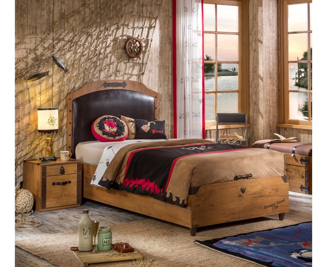 Кровать детская CILEK Pirate с кожаным изголовьем и базой