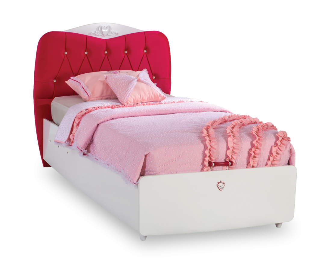 С изголовьем, украшенным камушками и тканью. Вместительная и надежная