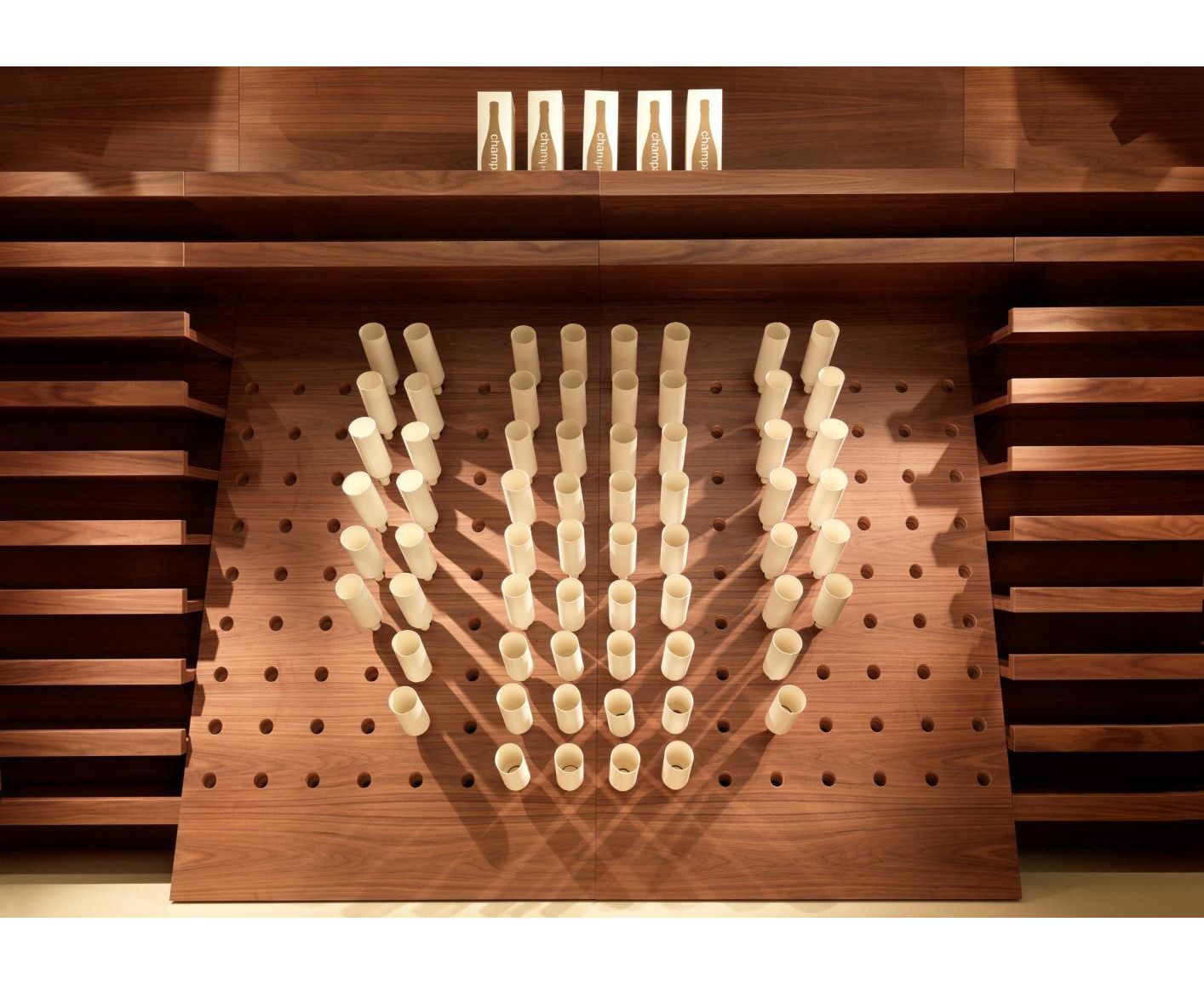 Винный погребок был спроектирован с целью правильного расположения и наклона бутылок c шампанским и с белым и красным вином.