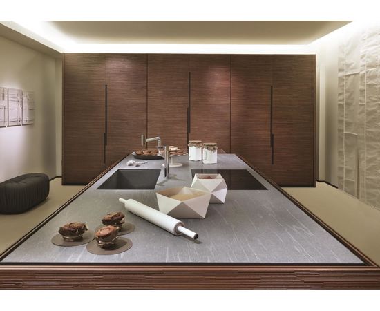 Проект кухни Bellagio отвечает новым требованиям и пополняет коллекцию Decor, состоящую из дверей, стеновых панелей и шкафов. Это уникальное по своей гибкости, качеству материалов и дизайну поверхностей предложение. Эти кухни задуманы для клиентов, находящихся в поиске роскошных решений, в которых преобладают уникальность и изящество в отношении материалов и дизайна изделия. Мрамор, хрустальное стекло, ценные породы дерева и металлы предлагают различные комбинации с одним общим знаменателем, которым отличается продукция Laurameroni – неповторимостью.