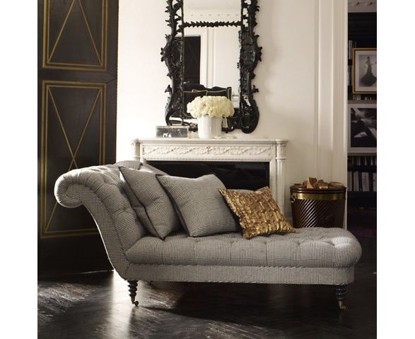 В этой кушетке 19-го века с фигурными подножками и ножками-роликами имеется изогнутый подголовник, сплошные руки и детали с обивкой, декорированной стежкой.