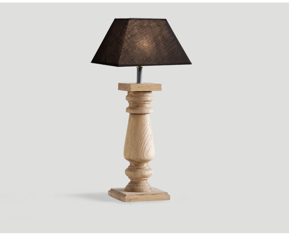 Lampada da tavolo in rovere finitura naturale con paralume quadrato in tessuto nero