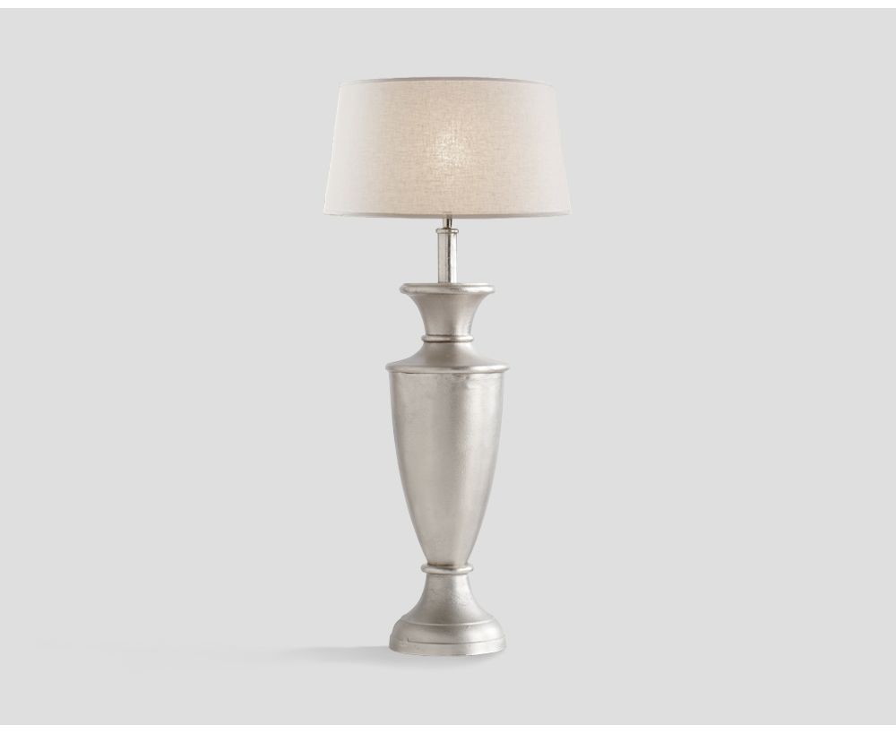 Lampada da tavolo, in fusione di alluminio, finitura sabbiata e lucidata con paralume tondo in tessuto Bianco