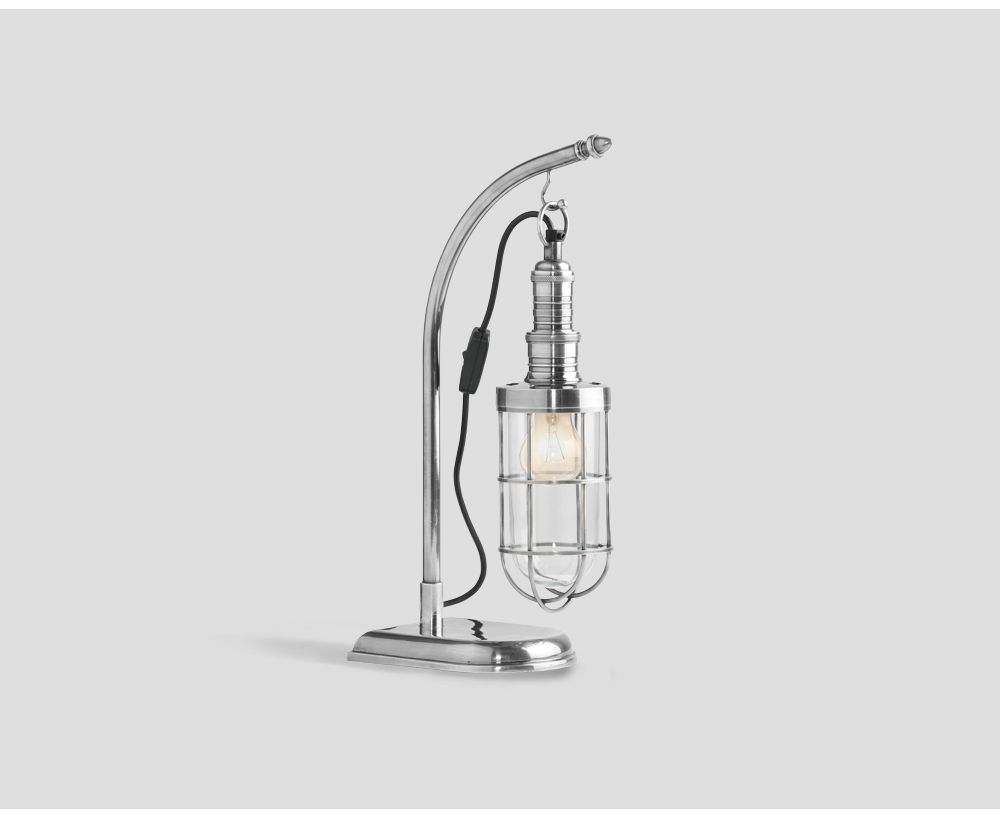 Lampada da tavolo portatile, in fusione di alluminio finitura nichel lucido