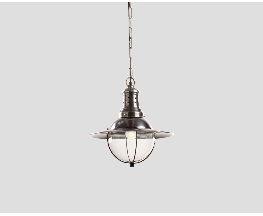 Lampada a sospensione tonda 1 punto luce, in metallo finitura nichel lucido con paralume in vetro