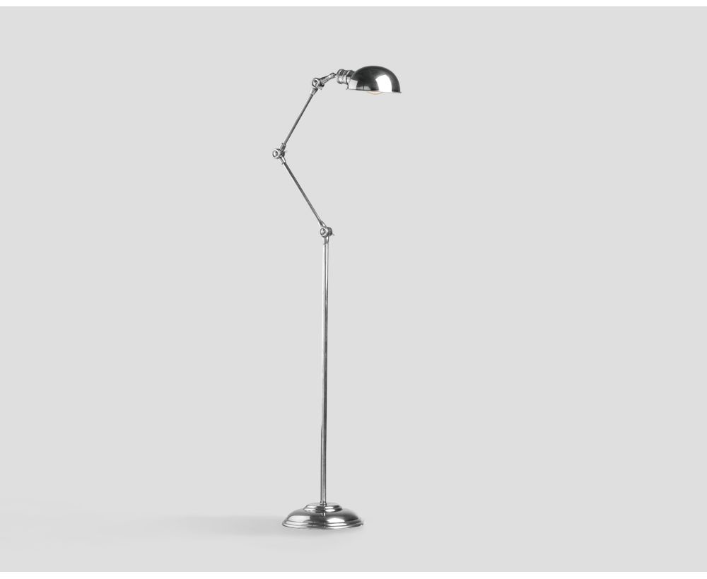 Lampada a piantana snodabile e orientabile, in fusione di alluminio, finitura nichel lucido