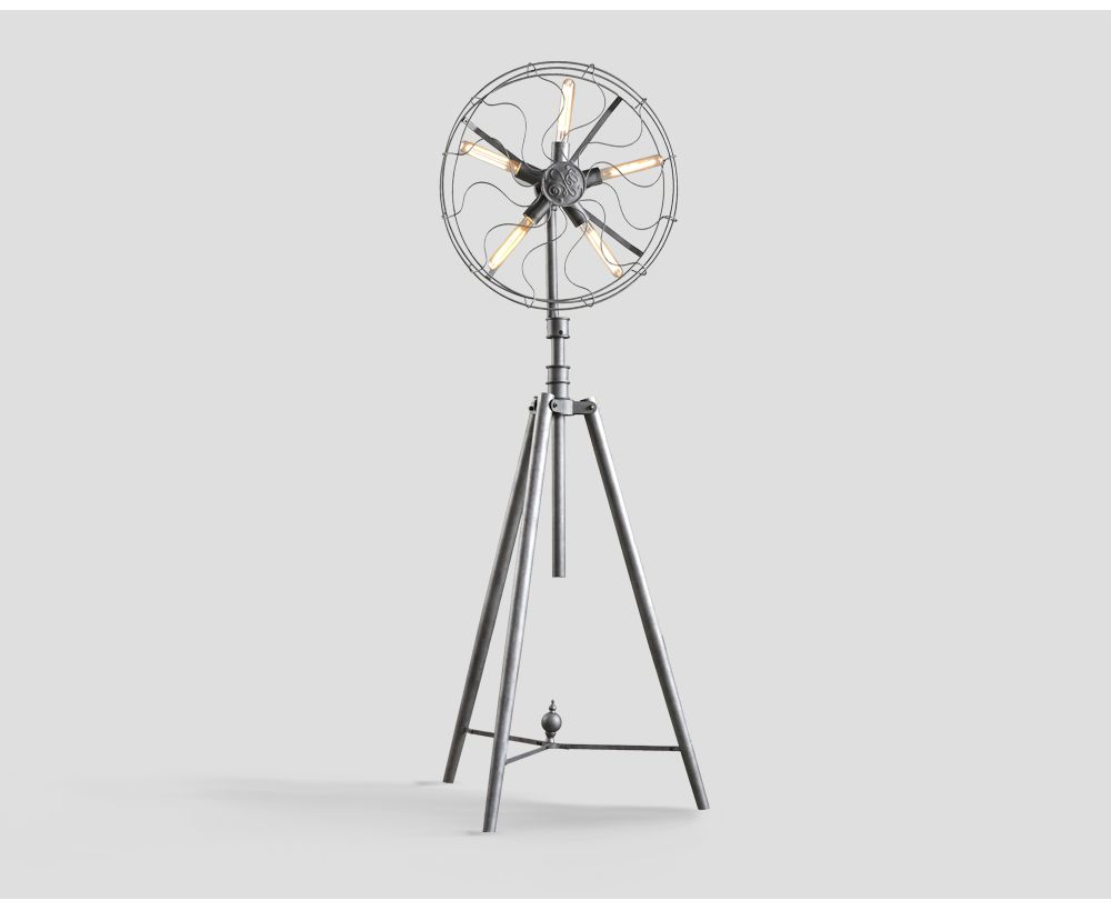 Lampada a piantana con 5 punti luce, in metallo finitura ferro brunito