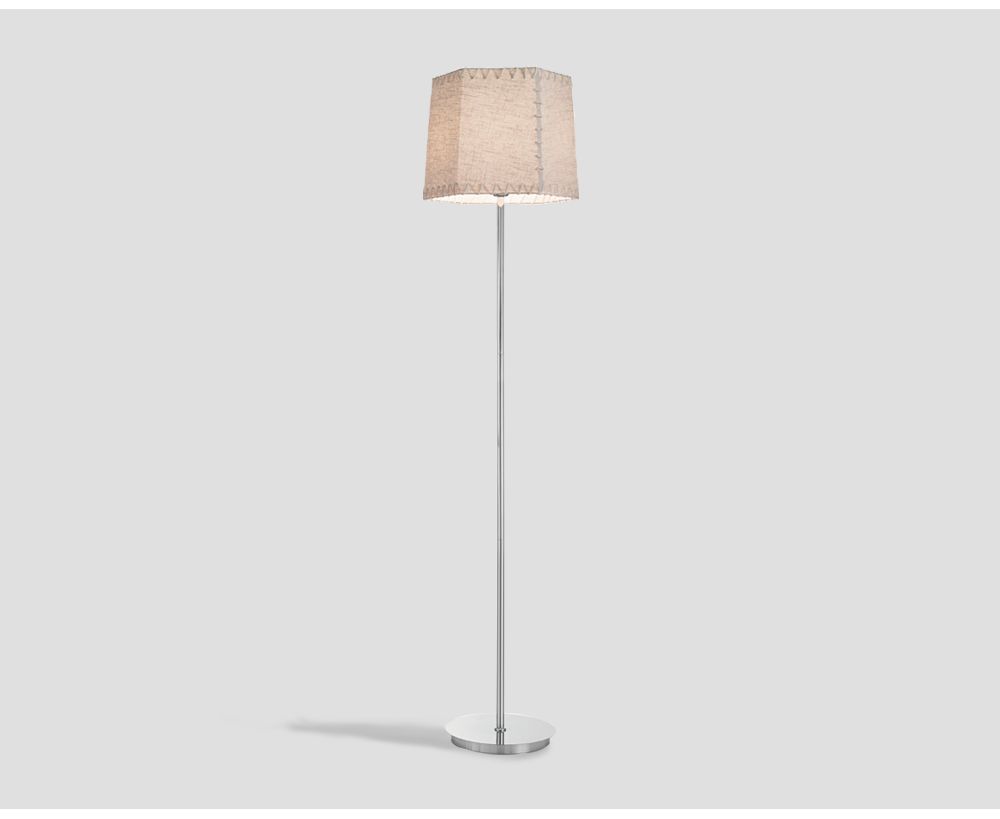 Lampada da terra, in metallo con paralume in tessuto beige con finiture in corda.