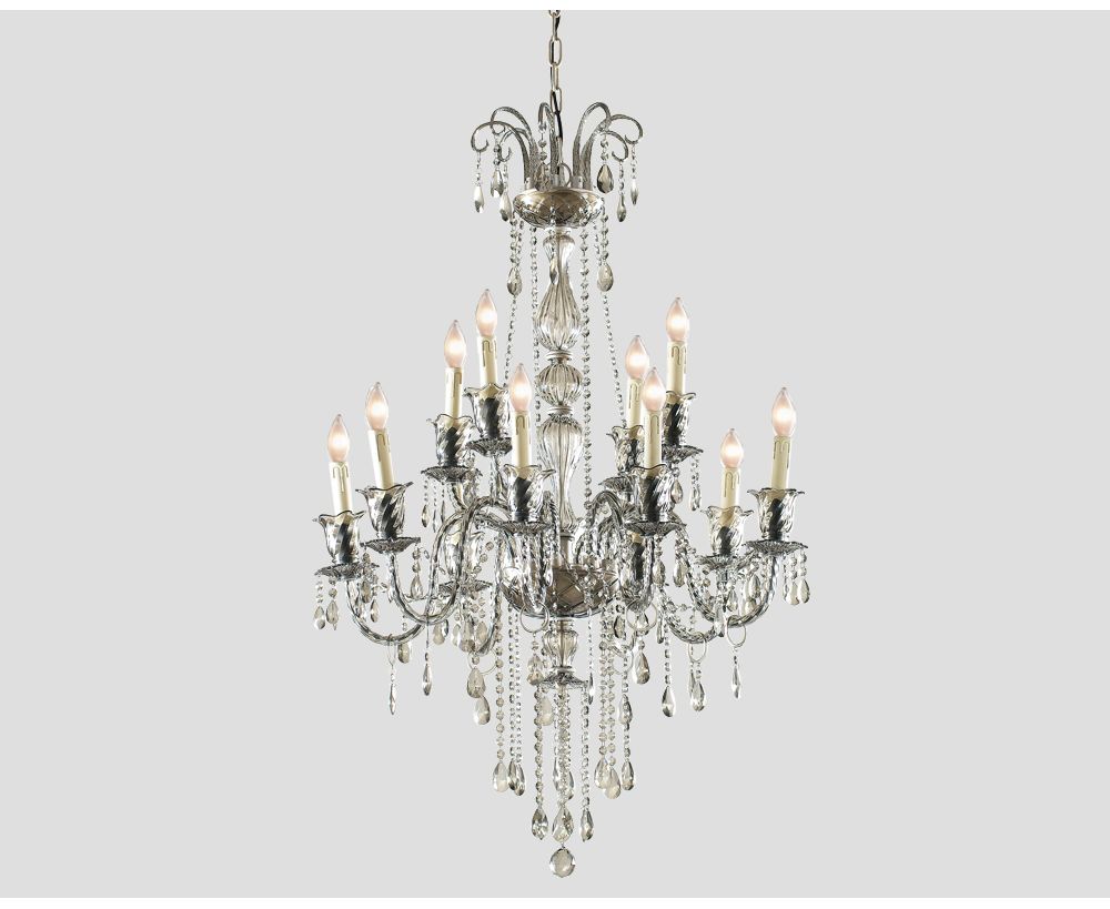 Lampadario in metallo con 10 punti luce, cristalli e pendenti color Fumo