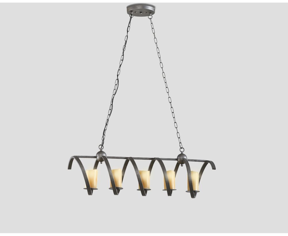 Lampadario 5 punti luce, in metallo finitura Arrugginita