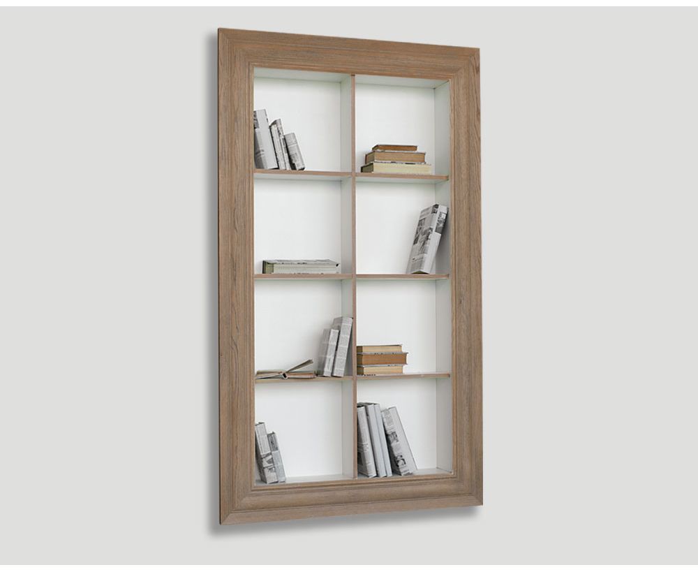 Libreria pensile in legno laccato Bianco Vissuto, con frontali in rovere finitura Vintage Chiaro