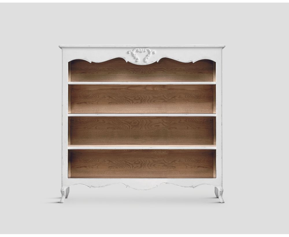 Libreria in legno, laccato Bianco Vissuto con interni in rovere finitura Vintage Chiaro