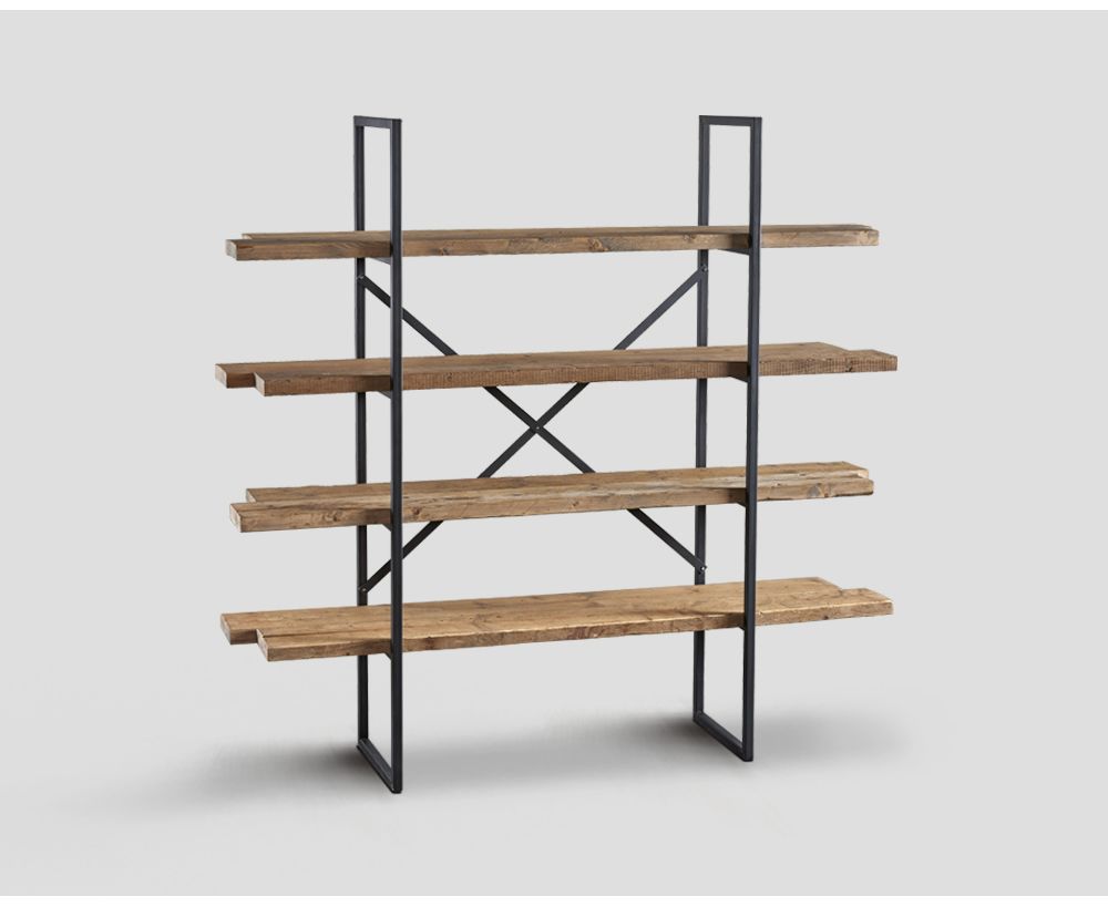 Libreria con struttura in metallo finitura Ferro Arrugginito, piani in legno vecchio riciclato finitura Naturale
