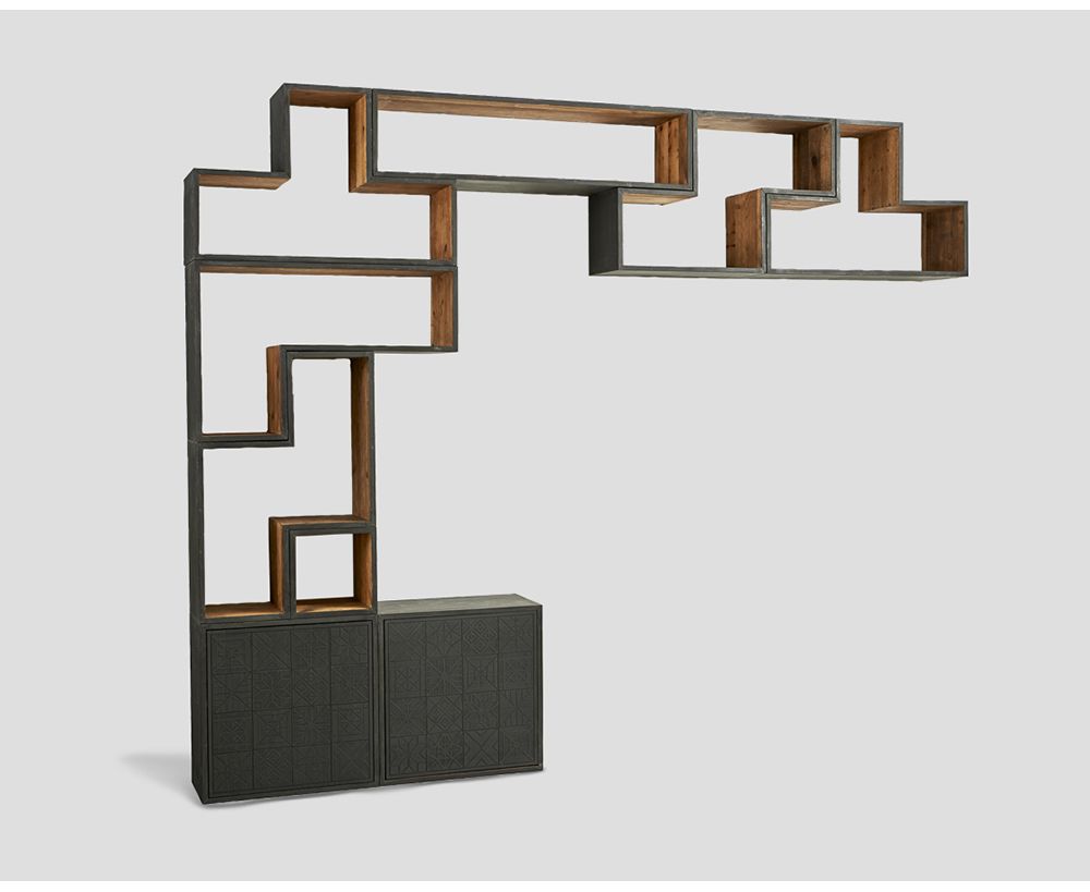 Libreria componibile, struttura in legno vecchio riciclato, interno finitura naturale, esterni disponibili in 7 colori: giallo, blu avion, rosso, bianco, lavagna, verde smeraldo, verde bosco e old pine.