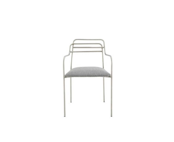 Коллекция стульев с или без подлокотников RESILLE. Модели изготовлены на полированном нержавеющем стальном каркасе. Противоскользящие накладки на ножках предотвращают любое скольжение. Сиденье с наполнителем из пенополиуретана и полиэфирного волокна. В уличной версии у подушки сиденья есть внутренний чехол из водонепроницаемой ткани. Обивка - ткань для домашних версий, обивка Dina (100% полипропилен) - для уличных моделей. Коллекция прекрасно подойдет и для использования в саду, и для использования в комнатном интерьере.
