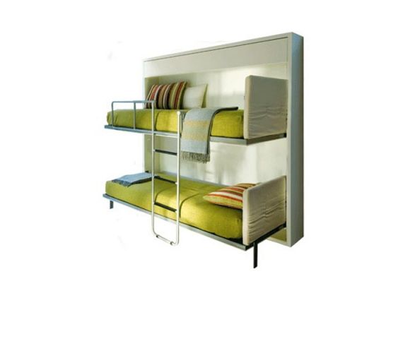 Система для спальни Lollipop In. Это компактный вариант для детской комнаты, который экономит пространство по максимуму. Система раскладывается легким движением, превращаясь в две односпальные кровати. В комплект входит лестница с защитой от падения.
