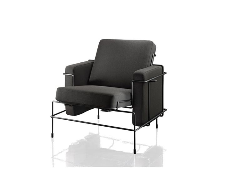 Кресло. Было выпущено в 2013 году. Простая форма и незамысловатый дизайн. Модель создана на контарсте холодного. жесткого металла и теплого, мягкого текстиля. Элементы конструкции нарочно выставлены наружу. Съемная обивка.