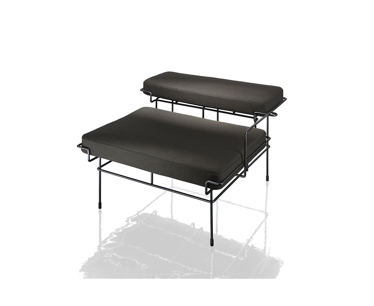 Кресло. Было выпущено в 2013 году. Простая форма и незамысловатый дизайн. Модель создана на контарсте холодного. жесткого металла и теплого, мягкого текстиля. Элементы конструкции нарочно выставлены наружу. Съемная обивка.