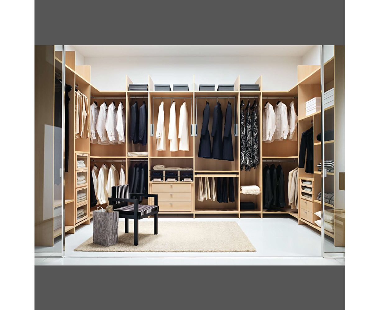 Гардеробные комнаты состоят из различных полок, ящиков, вешелок и других аксессуаров. Панели изготовлены из меламина в оттенках клен, темный дуб или белый непрозрачный, доступны 4 различных ширины. Есть в каталогах также стеклянные полки, широкий спектр аксессуаров для настройки каждой композиции в отдельности. Можно полностью регулировать расположение по вертикали и горизонтали, чтобы обеспечить идеальное сочетание панелей и аксессуаров. Широкий выбор цветовой гаммы.