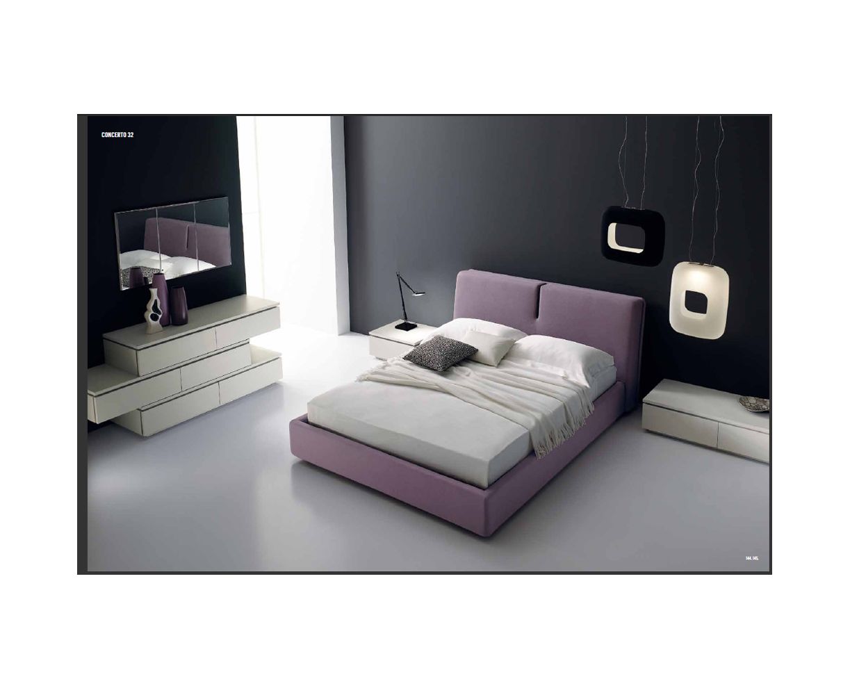 Мебельный гарнитур для спальни CONCERTO включает в себя несколько тумбочек, комод с выдвижными полками, двуспальную кровать. Различные конфигурации и размеры.