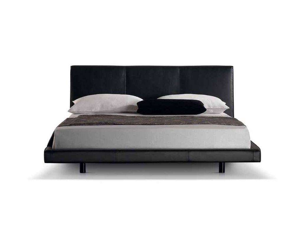 Двуспальная кровать в современной стиле. Невысокое мягкое изголовье украшено прострочкой.