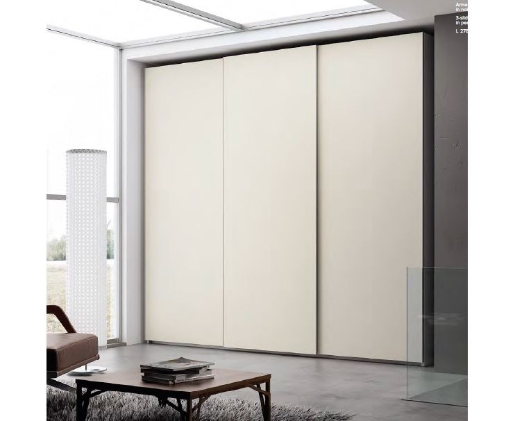 Шкаф-купе с 3-мя раздвижными дверцами покрытыми жемчужно-серой краской.