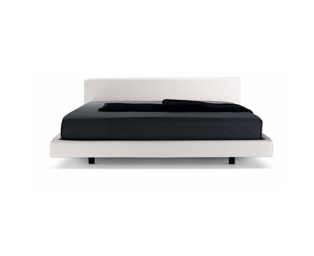 Двуспальная кровать с каркасом, полностью скрытым под обивкой. Невысокое изголовье.
