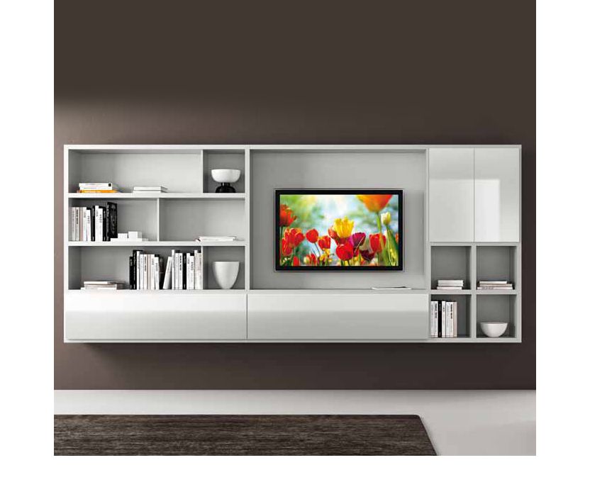 Модульный настенный стеллаж Mercantini NESTOS S84 без композиционных ограничений. Панели и полки различных типов.