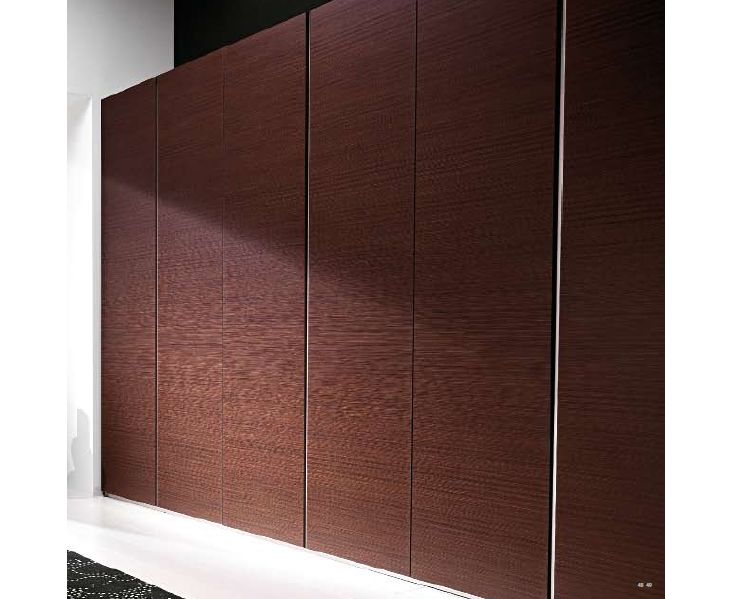 Шкаф-купе с 6-ю дверцами. Дверцы шпонированы дубом в оттенке мокко. Вертикальный алюминиевый профиль с ручкой.