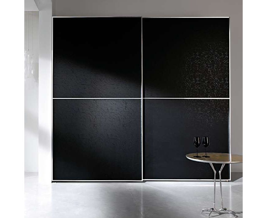 Шкаф с двумя раздвижными дверями с рамой из полированного алюминия и стеклом в отделке "ледяной черный".