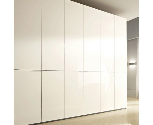 Шкаф-купе с 6-ю дверцами. Ручки тонкие, линейной формы, почти не заметны. Лакированные дверцы.
