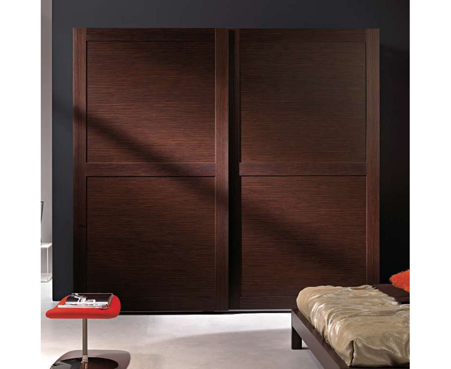 Шкаф с двумя раздвижными дверями облицованными шпоном дуба в цвете мокко.