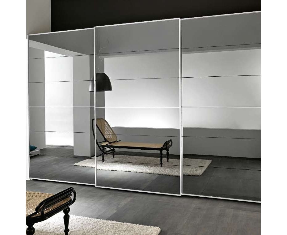 Шкаф с тремя раздвижными дверями с зеркальной поверхностью.