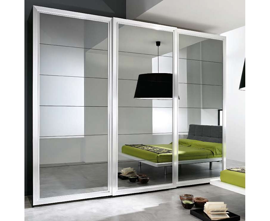 Шкаф с тремя раздвижными дверцами с зеркальной поверхностью.