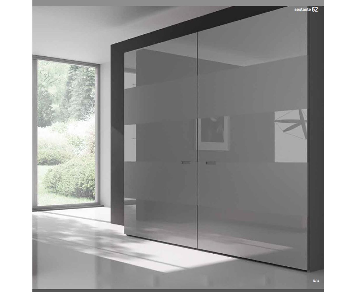 Шкаф с двумя дверцами из стекла, окрашенными в серый глянцевый или матовый цвет.
