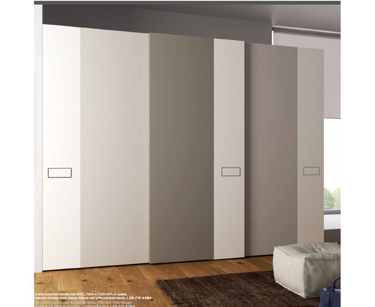 Шкаф-купе с тремя дверцами - глянцевыми или матовыми. Встроенные ручки.