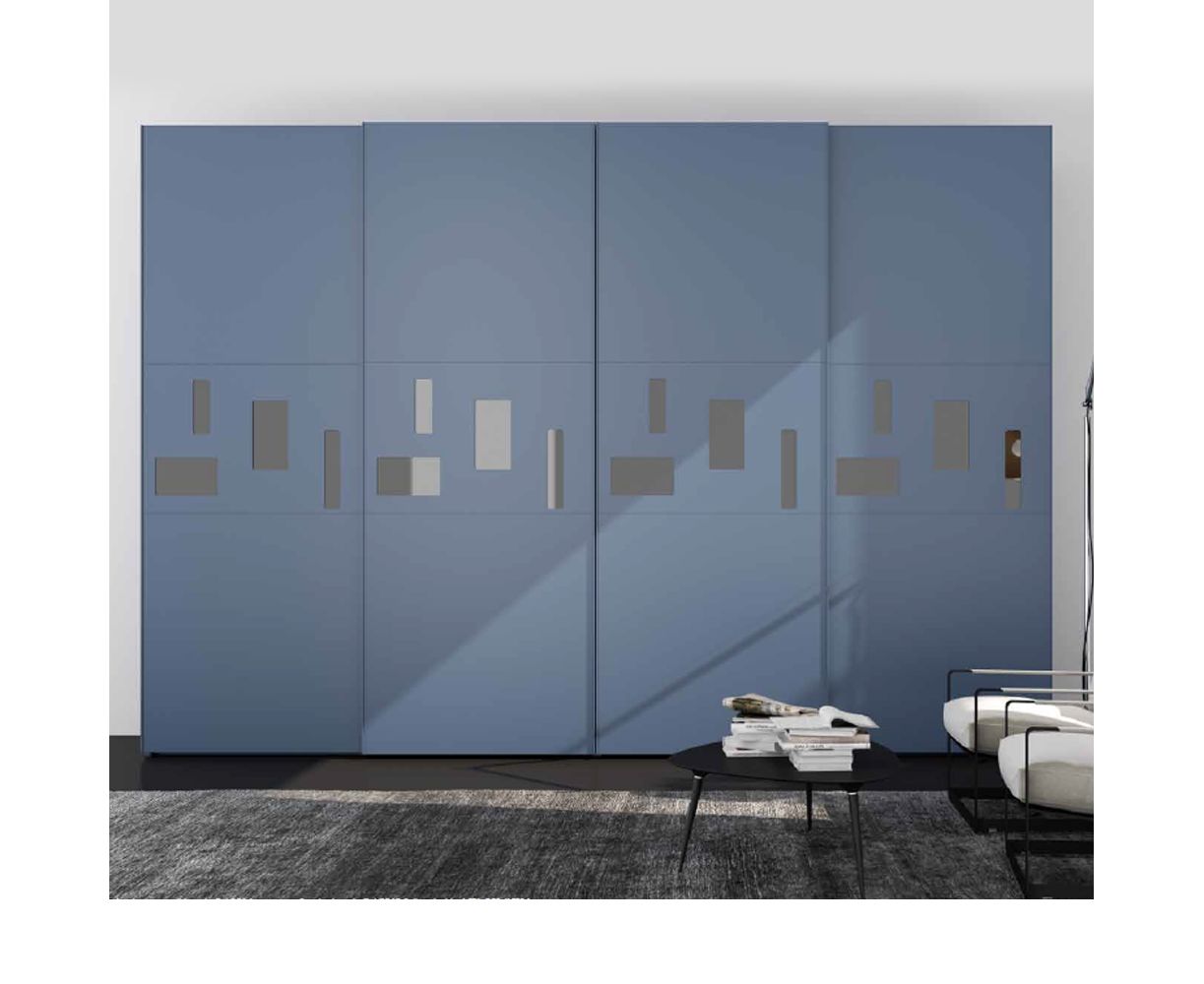 Шкаф-купе с четырьмя лакированными дверцами. Отделка теснением.
