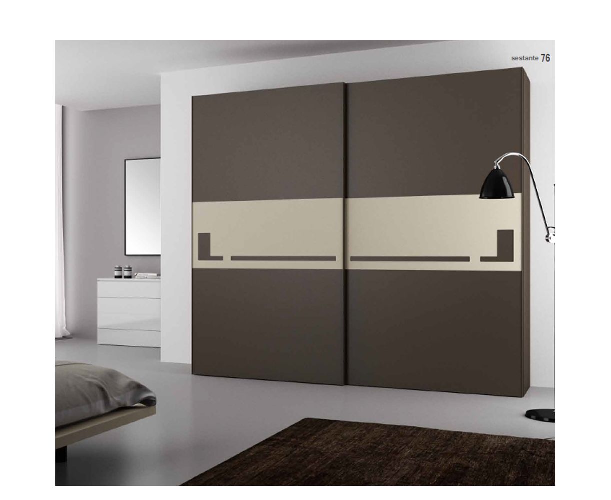 Шкаф с двумя раздвижными лакированными дверцами. Отделка тиснением.