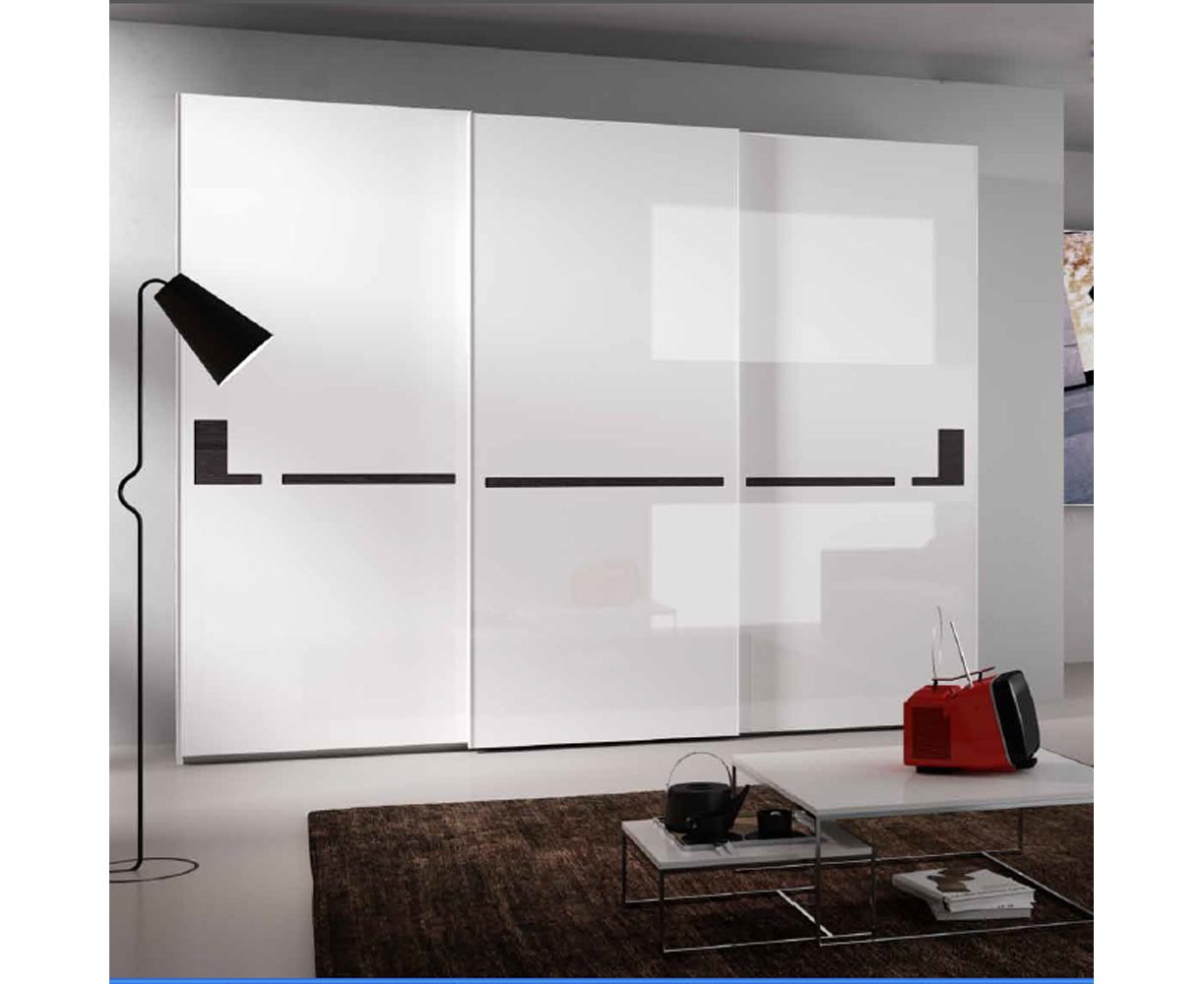 Шкаф-купе с тремя дверцами. Центральная панель окрашена в белый глянцевый лак, боковые - в белый матовый.