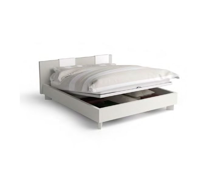 Двуспальная кровать с деревянным каркасом. Невысокое изголовье. Под основанием имеется вместительный отсек для хранения вещей, он не соприкосается с полом.