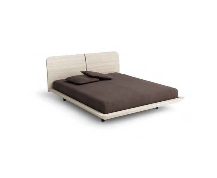 Двуспальная кровать с деревянным каркасом. Невысокое изголовье.