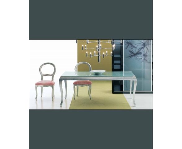 Стол выполненный в современном стиле. Четыре ножки имеют слегка изогнутую форму. Столешница имеет стеклянную поверхность. Возможны различные варианты окраски, как в однотонном цвете, так и контрастном или с рисунком.