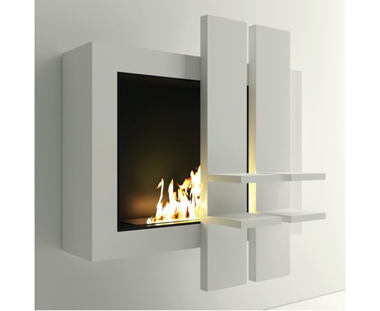 Настенный биокамин с простым дизайном и линейными формами. Модель дополнена двумя узкими вертикальными полками на которые удобно ставить различные декоративные предметы. Защитное стекло для камина по запросу.