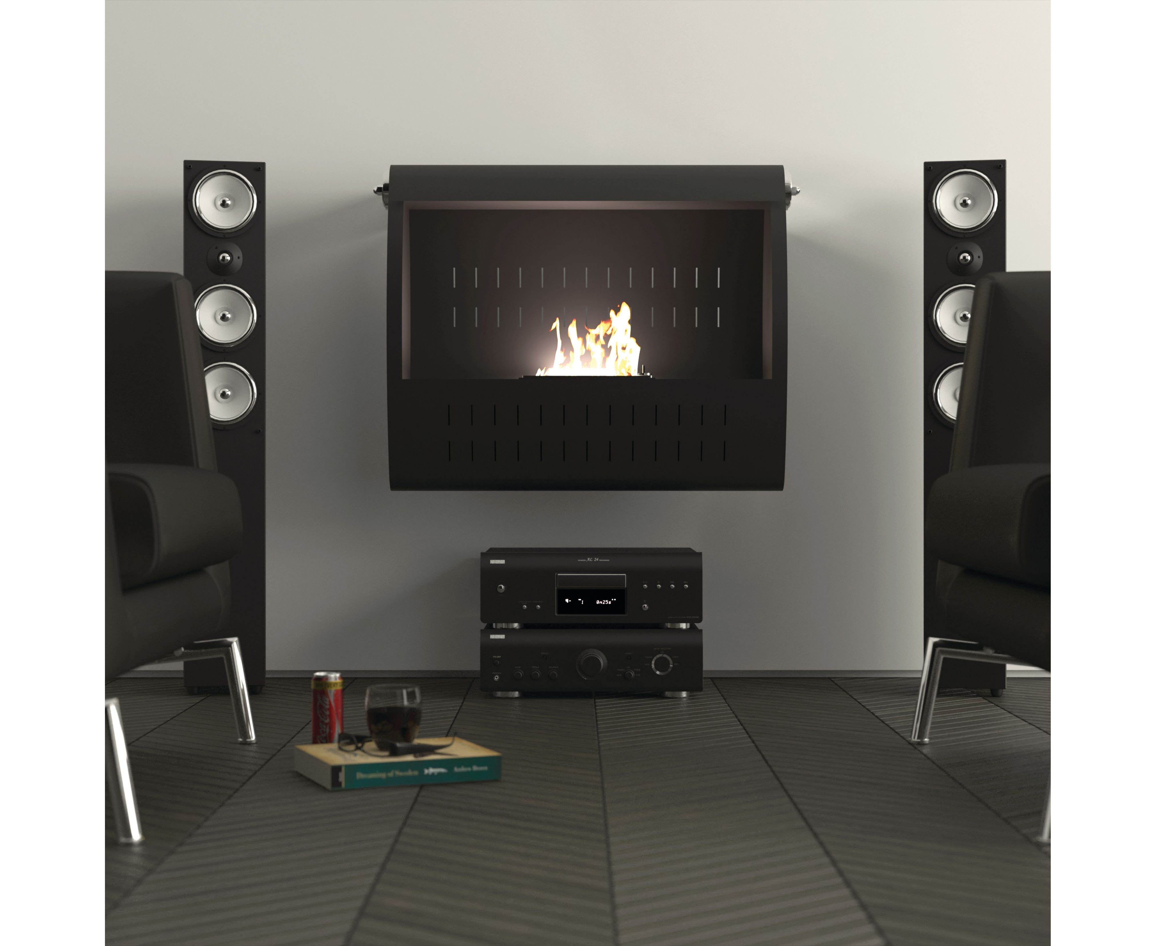 Настенный биокамин, открытый с лицевой стороны. Защитное стекло по требованию.